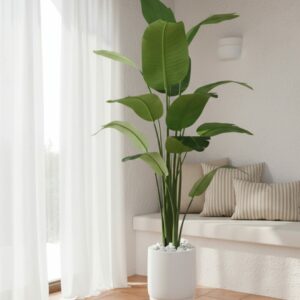Plante artificielle Feuilles de bananier avec pot et galets - hauteur 2.1 mètre - BH52